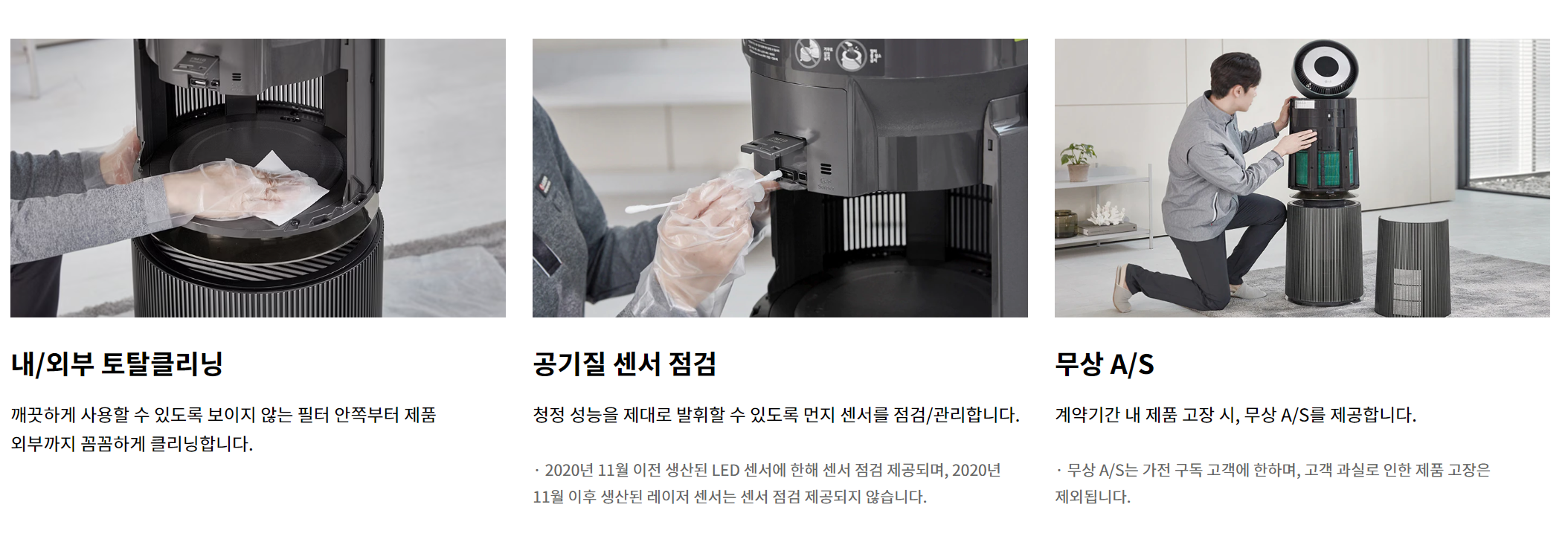 마찬가지로 LG 공식 홈페이지에 올라온 유지관리 방법입니다. A/S관련 내용도 있습니다.
