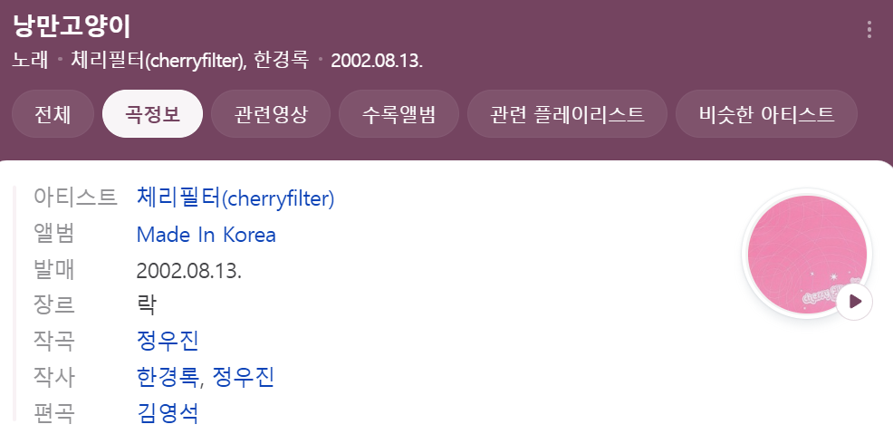 2009년 발매된 곡입니다. 노래방 마지막에 부르기 좋은 노래입니다.