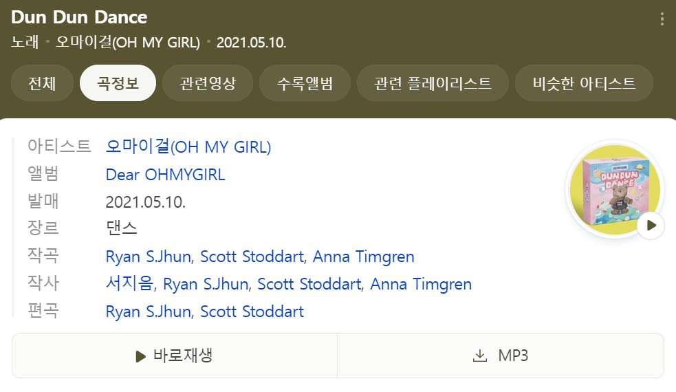 노래방 신나는 노래 추천 8번째, '오 마이걸의 던던댄스'입니다.