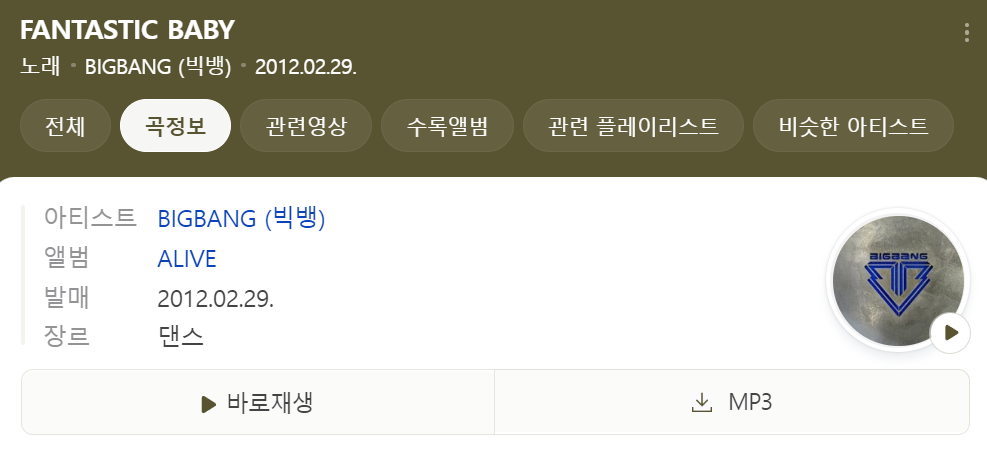 노래방 신나는 노래 추천 마지막 10번째, '빅뱅의 판타스틱 베이비'입니다.