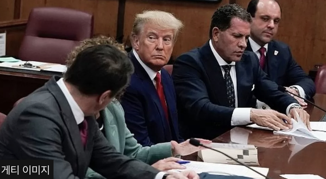 도널드 트럼프는 뉴욕에서 열린 법원 청문회에서 34건의 중범죄 형사 혐의에 대해 무죄를 인정한다.