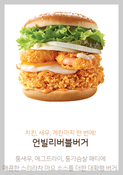 매콤한 걸 좋아하시는 분들이라면 언빌리버블 버거 추천드립니다.