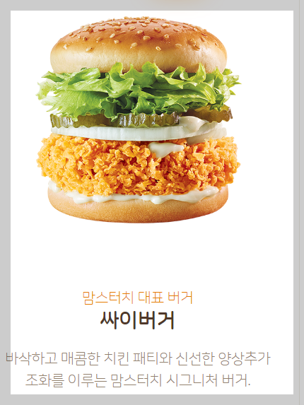 그래서 제가 자주 이용하는 햄버거 집 중 하나인 맘스터치의 메뉴 추천에 대해서 한 번 해보려고 합니다.