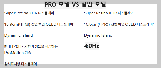 아이폰 16 일반 모델 PRO 모델 차이 : 디스플레이 주파수