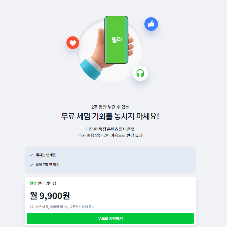 그래서 만약 궁금하다 하시는 분들은 위에 사진처럼 2주 무료체험 같은걸 해보시고 많이 들을것 같다 싶으면 들으시는 것을 추천합니다!