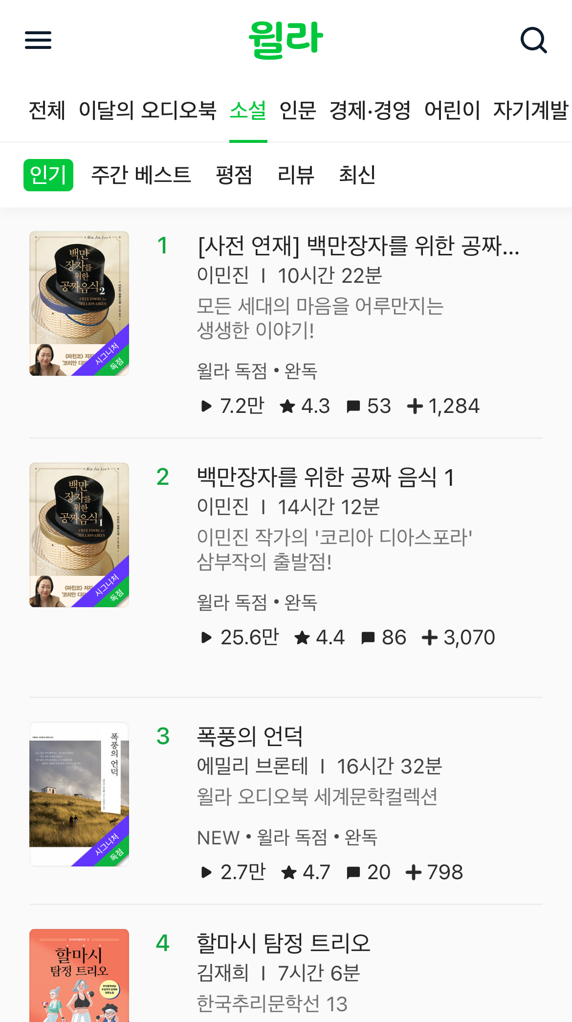 요새 윌라라는 오디오북을 2달 정도 듣고 있는데요. 리뷰를 남겨볼까 합니다.