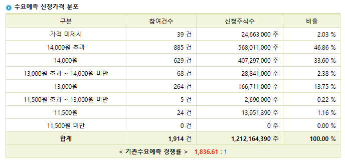 그 이유는 수요예측도 높은 게 제일 큰 것 같습니다. 모두들 잘 생각하셔서 공모주 청약 잘 선택하시길 바랍니다.