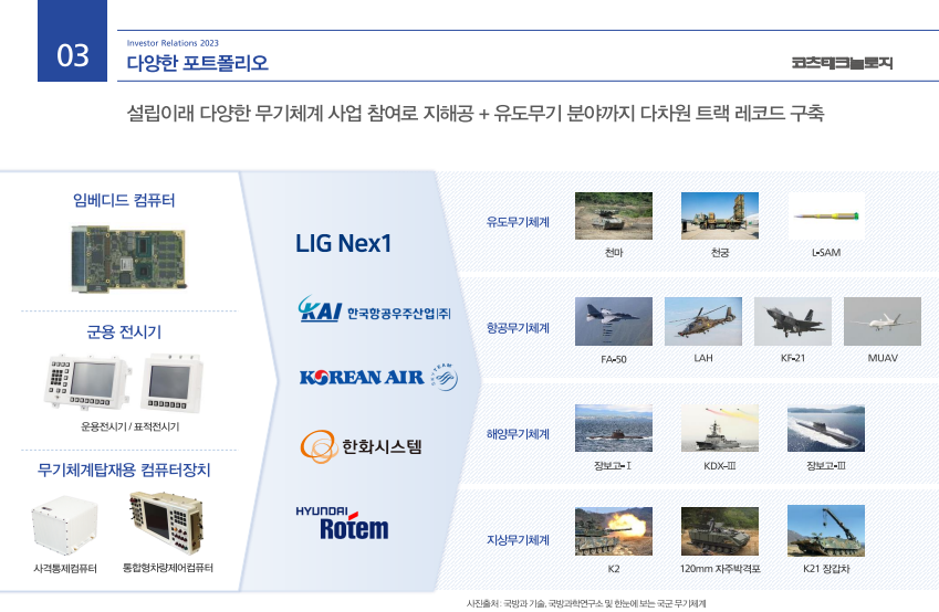 주요한 사업영역은 4가지로 방위산업, 민수, 선행기술, 신사업분야입니다.