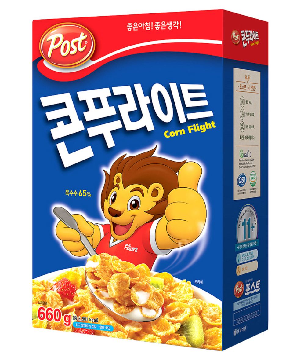동서식품의 포스트 브랜드로 생산 중인 콘플레이크 시리얼 제품으로 켈로그 제품인 콘푸로스트와는 맛이 많이 차이가 납니다.